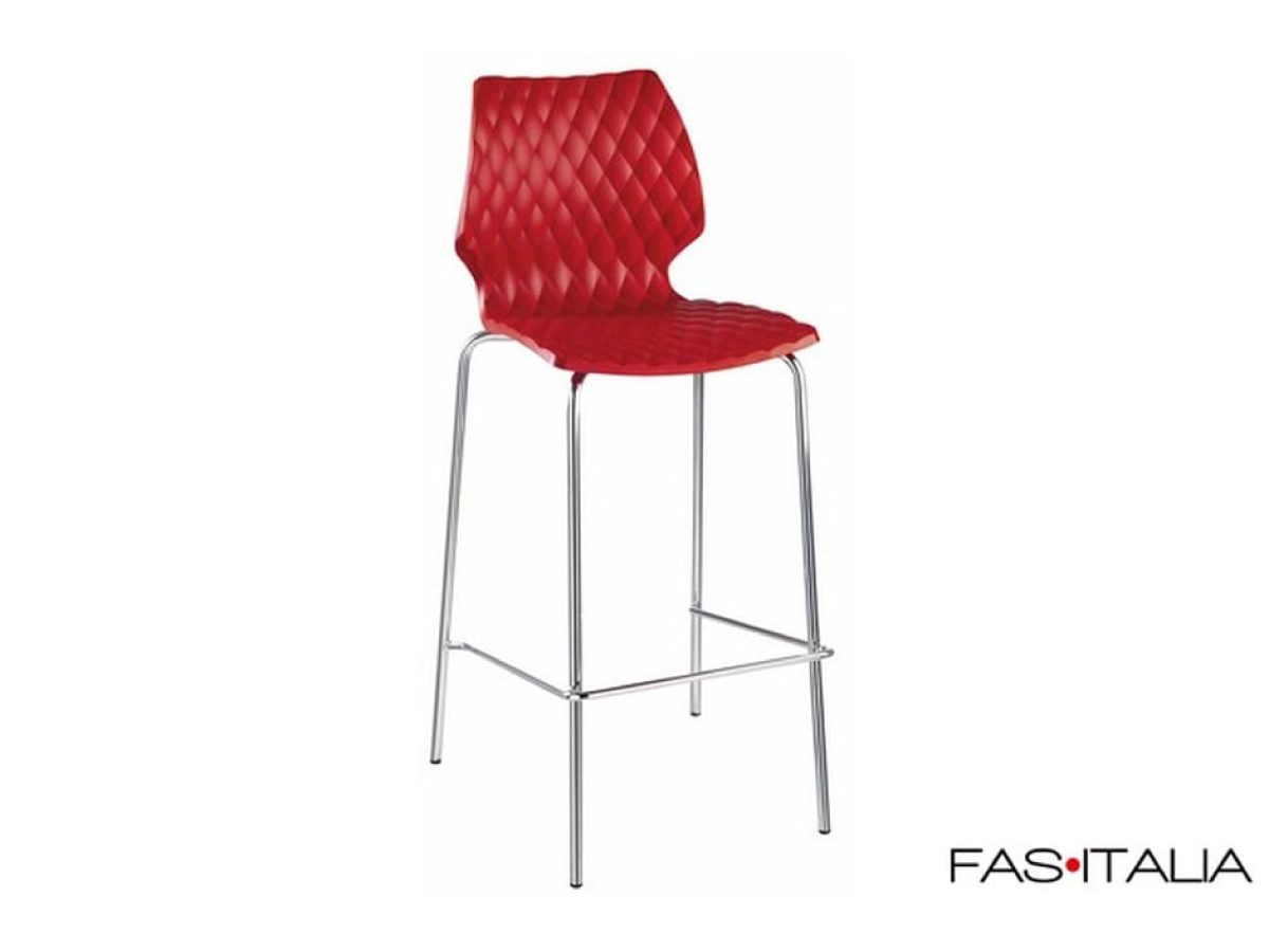 Sgabello alto con con seduta e schienale in polipropilene decorato a trapunta.