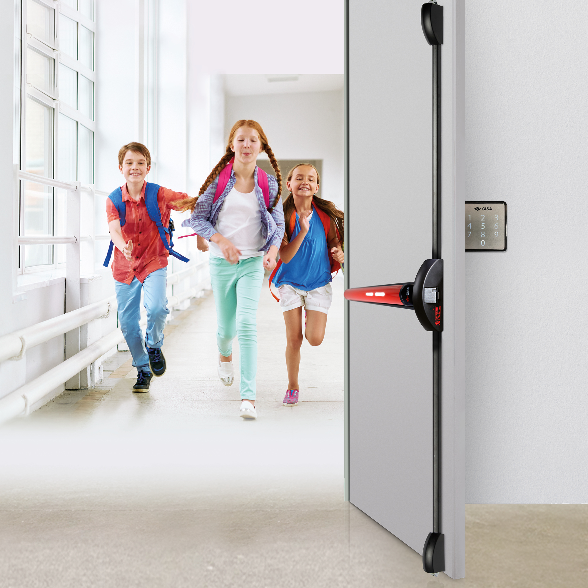 Il Sistema di luci al LED รจ abbinabile ai maniglioni CISA eFAST e FAST TOUCH (da applicare e infilare) e connettibile a un alimentatore dotato di batteria di backup. Unito a un sistema dโallarme o di rilevazione fumi puรฒ entrare in azione nel momento in cui la corrente viene a mancare, agevolando lโuscita in ambienti bui o nei quali la luminositร รจ impedita a causa del fumo.