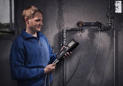 In caso di sospetto di una perdita – in una tubazione del gas o in una di acqua sanitaria o di scarico – si deve agire in fretta. Per il rilevamento affidabile di una perdita e della sua entità, trova applicazione lo strumento professionale per il rilevamento delle perdite di Testo. Il comando è reso davvero facile dal menu di misura passo passo. Ciò è di particolare rilevanza soprattutto in situazioni critiche in cui la velocità è tutto. Con il pannello operativo intuitivo e i risultati della misura affidabili sarete al sicuro e anche in caso di emergenza estrema potrete mantenere la calma necessaria. Questi vantaggi vi offre uno strumento per il rilevamento delle perdite di Testo: