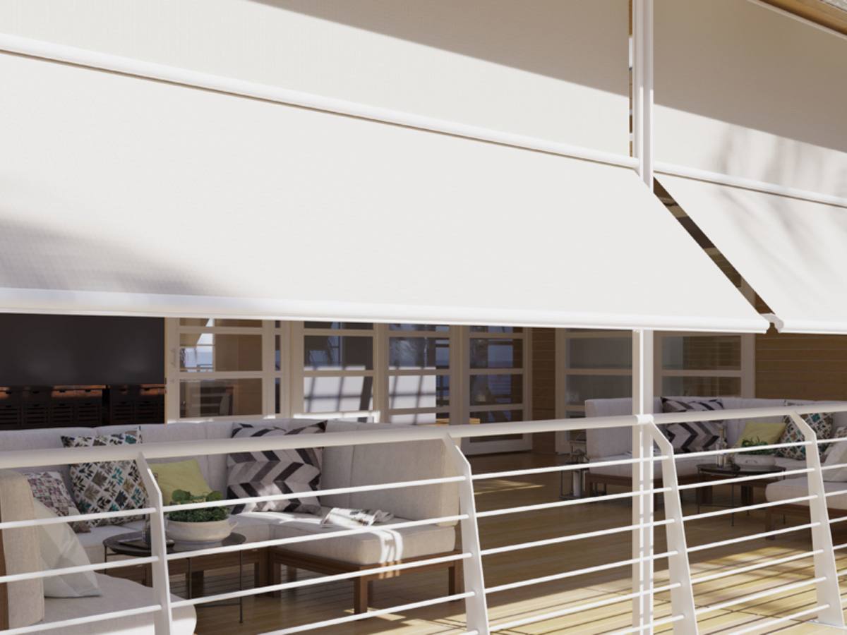 Tenda da balcone dalla forma caratteristica in grado di abbellire e movimentare il design delle facciate de palazzi e grandi fabbricati. Scorre su guide laterali che vengono fissate tra soffitto e ringhiera. L’impiego dei braccetti laterali e del frangitratta garantiscono alla tende un’ottima tensione del telo ed una migliore resistenza agli agenti atmosferici