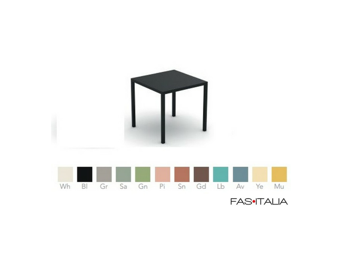 Tavolo quadrato in metallo a 4 gambe tubolari con lato 4 cm.