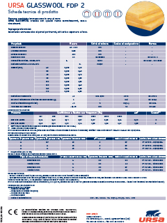 URSA FDP 2 è un pannello semirigido idrorepellente in lana di vetro URSA trattata con speciali resine termoindurenti. Il prodotto è disponibile anche nei tipi: URSA FDP2 / DVk con le due superfici rivestite con velo di vetro e URSA FDP 2 / Vk Nb con una superficie rivestita con velo di vetro e l’altra con carta kraft politenata con funzione di freno al vapore.
