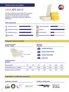 Pannello idrorepellente in lana di vetro trattata con speciali resine termoindurenti marcato CE in conformità alla norma EN 13162, rivestito su una superficie con kraft politenata con funzione di freno al vapore, realizzato con tecnologia di produzione URSA BiOnic Performance.