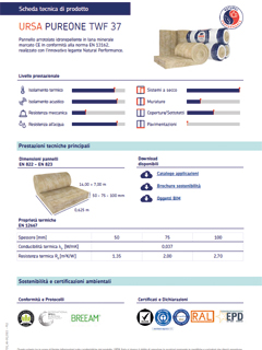 Pannello per isolamento termico ed acustico in lana di legno mineralizzata (50% – abete rosso) legata con cemento Portland (50%), marcato CE in conformità con la EN 13168. Esente da amianto, formaldeide, COV ed ogni altra sostanza nociva.